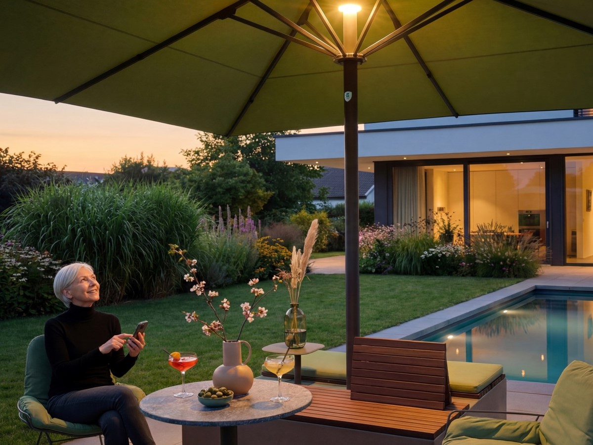 Open and close your motorised umbrellas conveniently via smartphone. Adjust lighting moods or create individual scenes – perfectly tailored to your surroundings. One tap is all it takes.